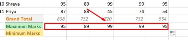 MIN function ka use hum yahan ek subject ke minimum marks nikalne ke liye use karenge.